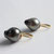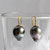 Die Farbe ist ein warmes Anthrazit mit einem sehr guten Lüster, die Oberfläche ist frei von Beschädigungen. Die kleine runde Fassung und der Ohrhaken sind aus recyceltem 900 Gelbgold gearbeitet.