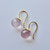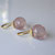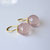 Zartrosa Hängeohrringe mit 900 Gold und Rosenquarzen im Kugelschliff. Die Steine haben eine sehr schöne Klarheit die sie glänzen lässt, sie sind aber auch noch ein klein wenig milchig, sodass der rosafarbene Farbton gut hervorkommt.