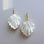 Strahlend weiße Sommerohrringe in Form einer Muschel.