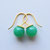 Leuchtend grüne Chrysopras Ohrringe mit 900 Gold. Die Steine sind komplett opak, also nicht durchscheinend und sind zu schönen, vollen Kugeln mit einer Größe von 10mm geschliffen, in bester Qualität. Die Kombination aus Grün und warmgelbem 22k Gold wirkt besonders strahlend und macht nicht nur Lust auf den Sommer, sondern passt auch prima zu allen Haar- und Hauttypen.