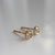 Der Haken und die gewölbte Fassung sind aus mattiertem warmgelben 900er Gold gestaltet.