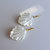 Diese seidigschimmernden Muscheln wurden aus Perlmutt geschnitzt, der sogenannten Mother of Pearl. Die Qualität ist sehr schön, fehlerfrei und mit einem feinen Weiß. Eingefasst wurden sie mit hochwertigem, warmgoldenen 900er Gold.