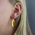 Diese auffälligen Ohrringe sind aus recyceltem 900er Gold geschmiedet mit einer matten, warmgoldenen Oberfläche. Durch die konkave Wölbung entsteht eine wunderschöne strahlende Wirkung, ein Blick auf pures Gold. Sie erinnern an Schmuck aus der Antike, die strahlende Sonne...